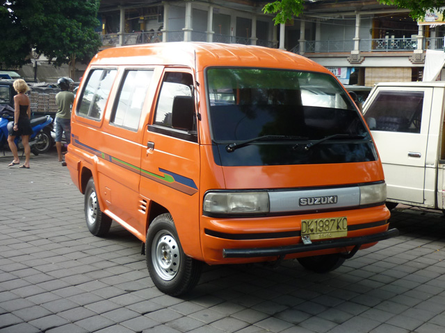 ベモは、この写真のようなワンボックスの車で、後部はバスのようにベンチシートになっており、複数の乗客を乗せて走ります。