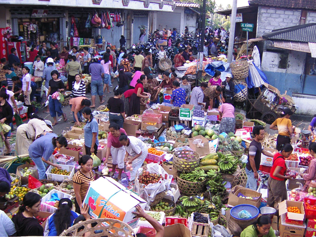 早朝、ウブド郊外の村から農家のおばさん達が自分たちが作った野菜や、鶏、生鮮食品を持ってパサールに集まります。